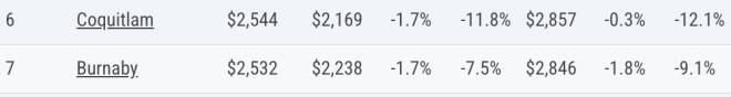 虽然报告未显示各户型数据,但总体租金仍处于大温前列,仅次于温哥华与北温。