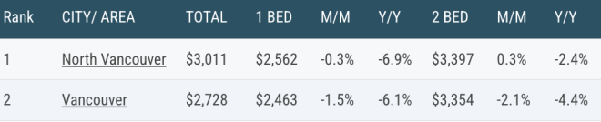 尽管租金较去年有所下降,北温仍处于大温租金的顶端。