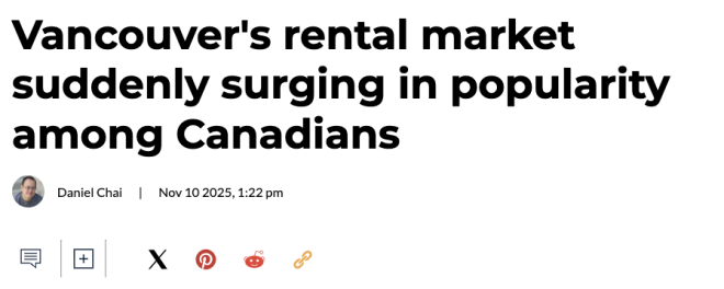 据Daily Hive报道,温哥华最近在租房市场上热度暴涨——已成为加拿大租客重点关注的城市。