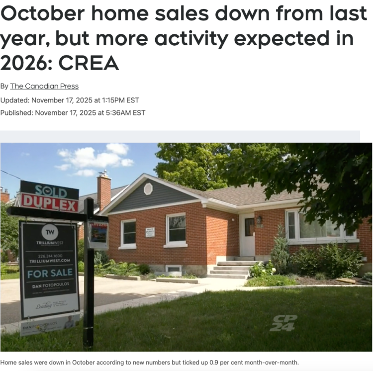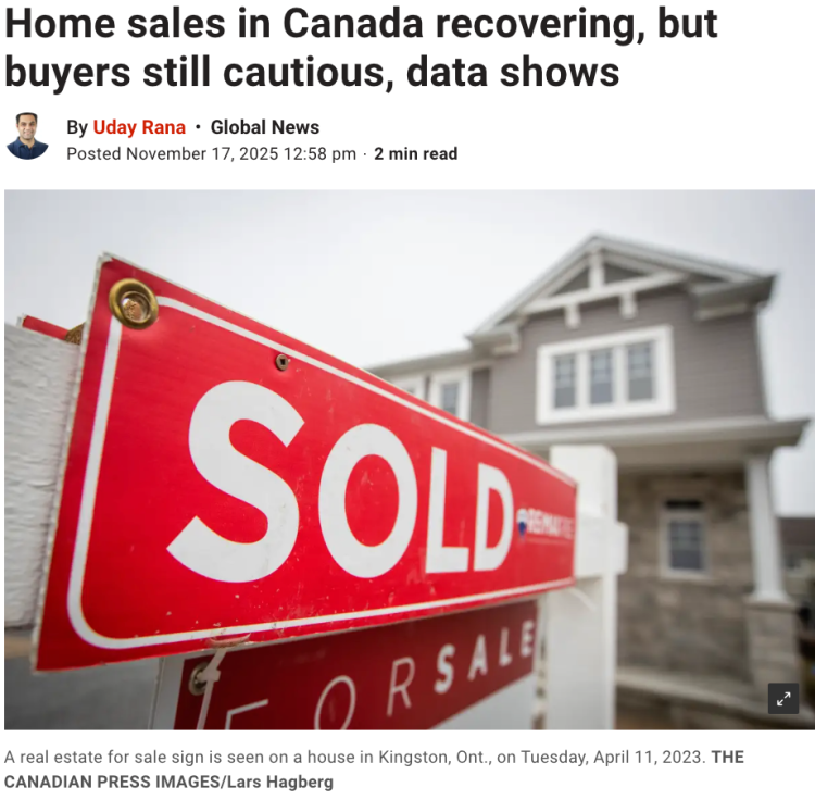 根据加拿大房地产协会CREA今天(11月17日)公布的数据显示,虽然10月份房屋销售正在复苏,但买家仍然小心观望,预计2026年将更加活跃。