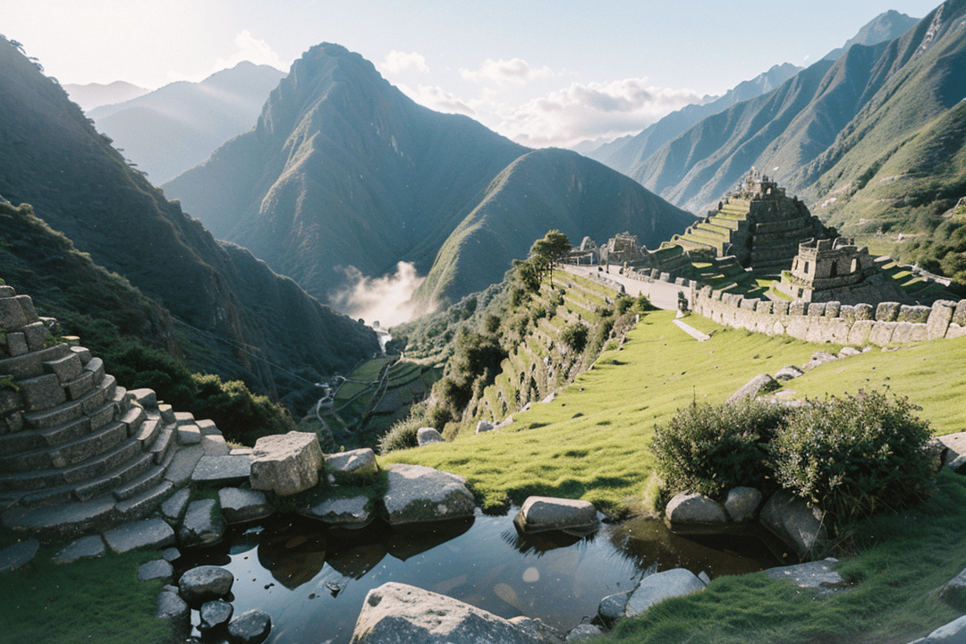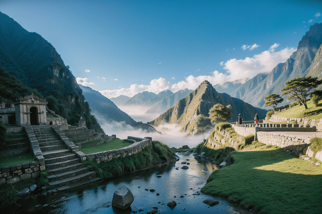 沿着古道缓步而上,脚下的石板似乎在低声诉说着几百年前印加人行走的故事。两侧的山峦连绵起伏,翠绿的植被从山谷倾泻而下,偶尔有溪流从石缝中跳跃而出,发出悦耳的水声,仿佛为这条通往古城的道路谱写一首天然的乐曲。风吹过耳畔,带来远方的雪峰气息,让人既感到清凉,也感受到大自然的磅礴力量。