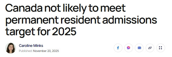 这些措施的共同结果是:符合资格申请PR的临时居民数量明显下降,临时居民转移民(TR → PR)的路径在结构上被压缩,进一步拉低了今年新移民的整体基数。