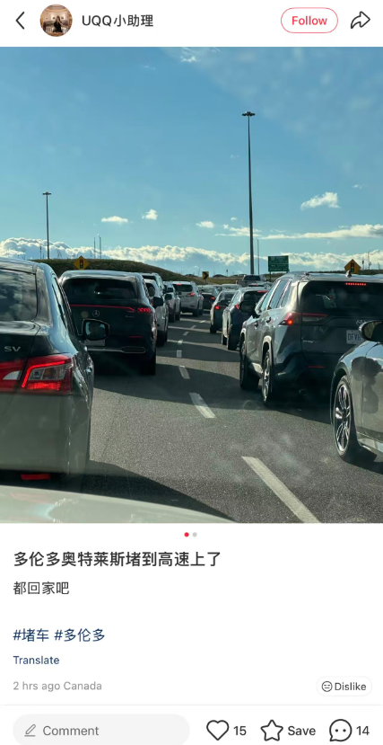 挤爆!401高速大排数千米 华人亲历堵成一片