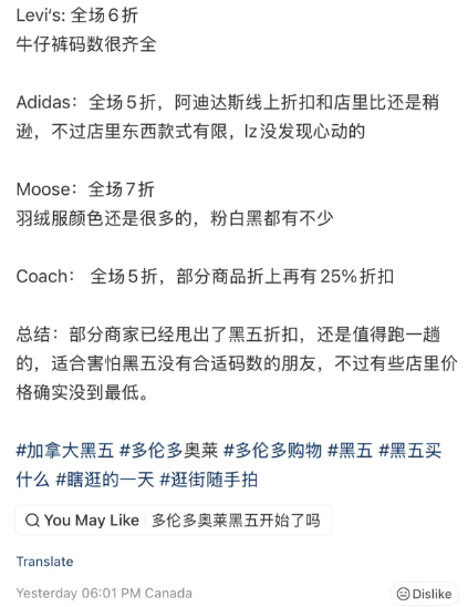 虽然今年的黑五在11月28日,但是这个周末(11月22日-23日),多伦多人已经开启了疯狂购物的模式——消费能力下滑,更要提前抢折扣。