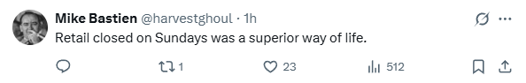 “以前商店都在周日关门的,那种美好的生活已经一去不复返了。”