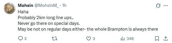 一位网友看了视频后表示,这队伍估计有2km长。并建议大家:“不要在节日前往Premium Outlets,最好平常日子也别去,因为所有Brampton人都在那儿。”