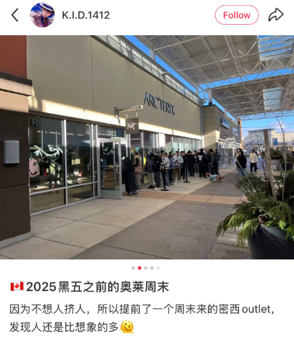 有一位华人网友成功挤进了Outlets。他原本想着提前一周来购物,避开黑五,结果发现人还是比想象中的多。