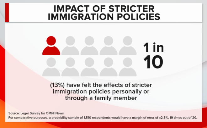 OMNI–Leger民调显示,目前只有一成移民已经亲身或通过家庭成员感受到政策收紧的影响。随着新措施逐步实施,受影响的人可能会增加,一些人已经深受打击。