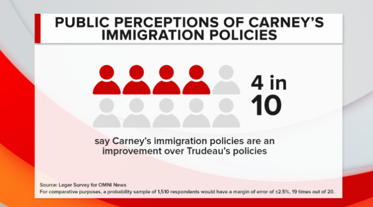 近四成(40%)的受访者表示,他们认为卡尼领导的政府与前总理特鲁多政府的移民政策没有区别;另有40%的受访者认为当前政策有了改善。
