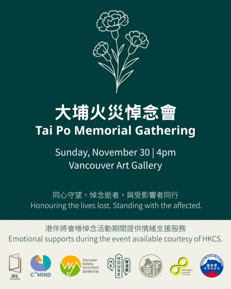 港伴会、温哥华街坊会等组织今天星期日下午举办一场公开悼念会,若有需要有一个时间、空间去纪念逝世者或记挂受影响嘅人、或者想有人陪伴一下,欢迎下午4点在温哥华美术馆广场前见面。