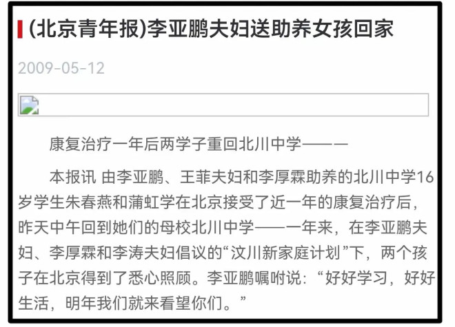 那时候的李亚鹏,正值壮年,他和王菲创立的“嫣然天使基金”启动了“汶川新家庭计划”。李亚鹏当时发愿:我们要助养这些孩子,不仅是给钱,是要像家人一样陪着他们长大。