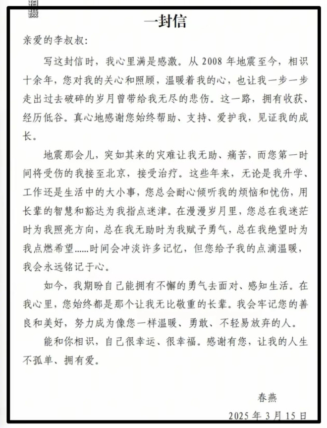 2025年3月,朱春燕给李亚鹏写过一封长信。