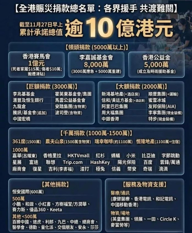自香港火灾后,各界人士都纷纷伸出了援手,各种捐钱捐物资和出场地。