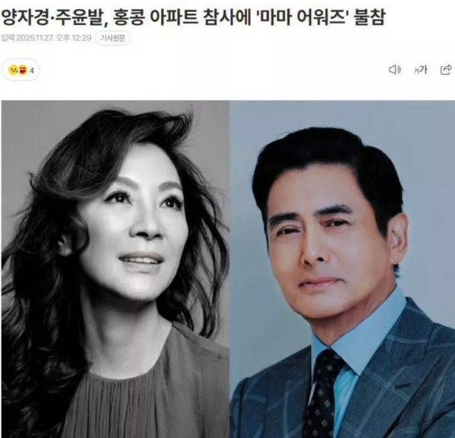 香港大埔发生火灾后,有媒体称周润发和杨紫琼原本对外表示将不参加MAMA颁奖典礼。