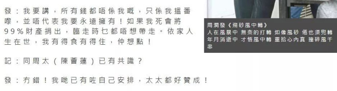 后来说到捐财产,谈到捐款理由,周润发表示:“钱不是我的,我只不过暂时保管。”