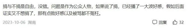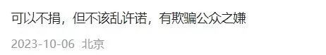 有网友表示:“自己的钱不捐也没人指责,但不应该乱许诺,欺骗大众的感情。”