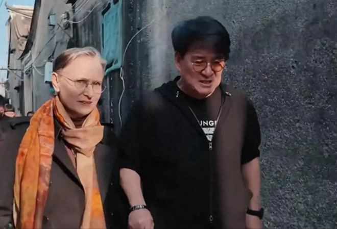 而他身边那位银发女士——康粹兰,气质绝对有,但白发如霜,皱纹明显,站在周华健身边,真有点母子的既视感。