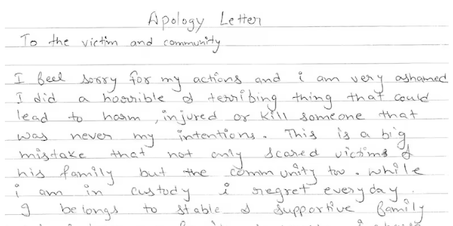 Kingra还亲笔写了一封道歉信,写给“受害者和社区”。