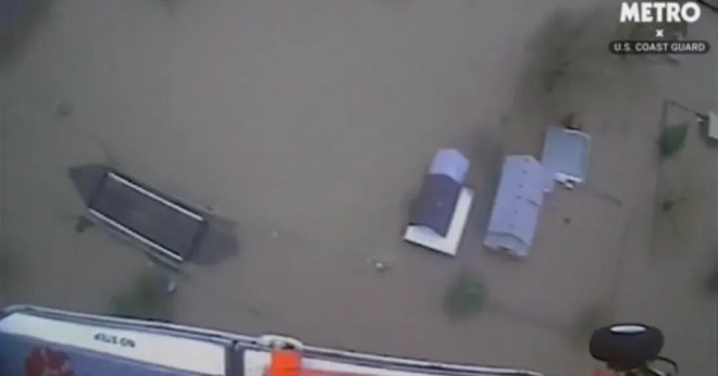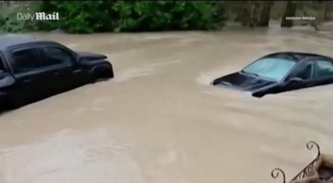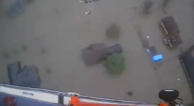 很多人直到洪水冲进院子才意识到事态的严重。有人被困在车顶,跪在湍急的水流中等救援;警方只能先用无人机投下救生衣,再用直升机把人从空中吊走。
