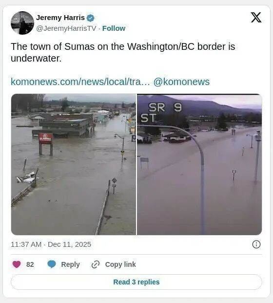 华盛顿州北部的洪水,通过努克萨克河,一路向北“溢出”,进入加拿大BC省。对于阿伯茨福德、苏马斯草原一带的居民来说,这种感觉并不陌生——四年前,他们刚刚经历过一场几乎摧毁当地农业的洪灾。