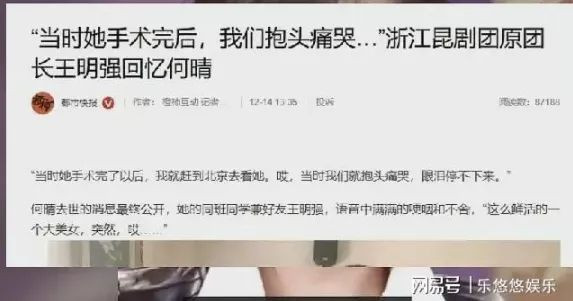 12月14日,何晴去世上热搜,享年61岁,让无数人痛心,其生前好友、浙江昆剧团原团长王明强回忆何晴,并晒出去医院探访何晴的照片。