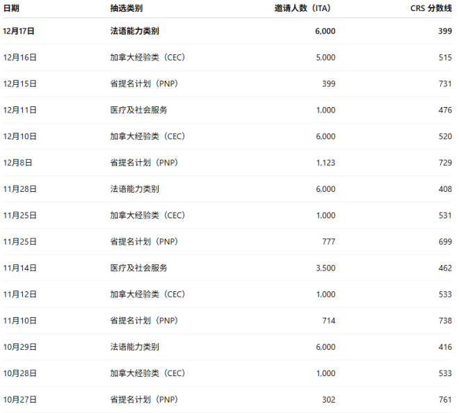 就在12月15日至17日短短3天内,IRCC通过快速通道(Express Entry,EE)连续发出3轮邀请,覆盖加拿大经验类(CEC)、省提名(PNP)、以及法语类别。
