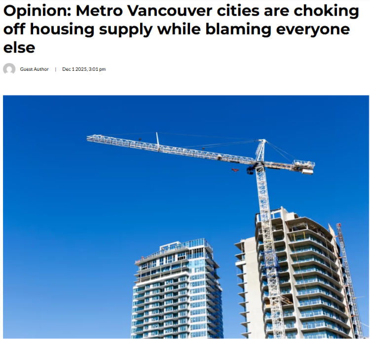 大温哥华地区及各市的政府工作人员已开始承认存在深层问题。在最近的一次大温哥华地区市长委员会会议上,加拿大按揭与住房公司(CMHC)及市政工作人员描绘了住房建设行业的严峻状况:预售被冻结,融资枯竭,建筑成本持续高企,而已获批准的项目因可行性下降而停滞不前。