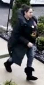 其中一名女性嫌疑人的特征有:黑发、黑色连帽夹克、正面印有彩色图案的黑色衬衫、蓝色牛仔裤和黑色靴子。