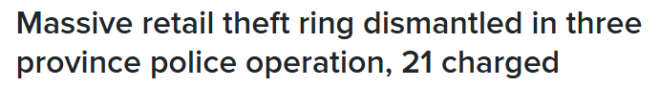 加拿大大型盗窃团伙被捣毁:21人被控 有7旬老人