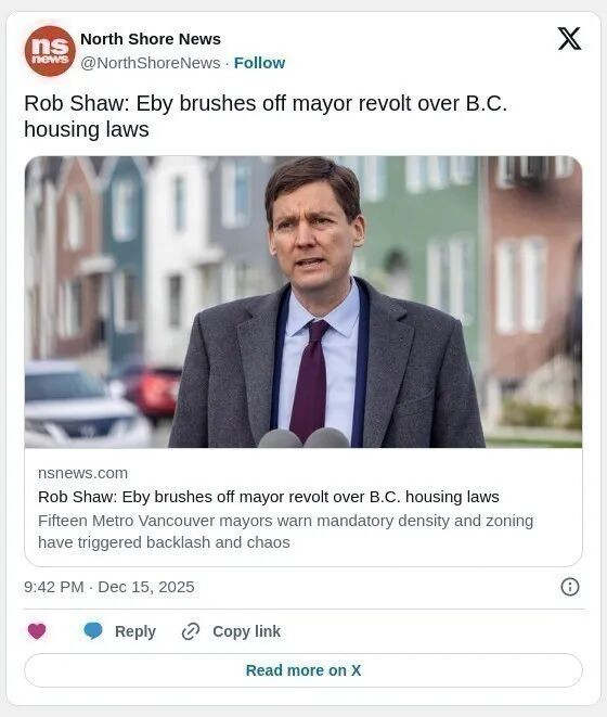 长期支持新民主党NDP的高贵林港市长布拉德·韦斯特(Brad West)则措辞更为严厉,批评省府住房立法是“本省有史以来最欠考虑、最失败的政策之一”,并指责这是省长对地方自治的“前所未有的权力集中”。