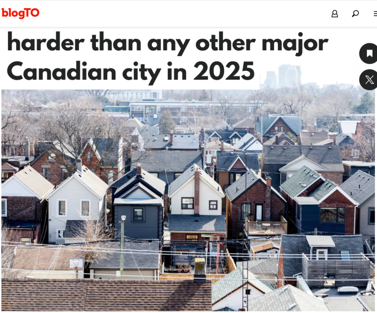 根据最新数据,2025年多伦多房价跌幅居加拿大各大城市之首,这也标志着在经历了数月的房价平稳期后,加拿大全国房地产市场首次出现同比下滑。