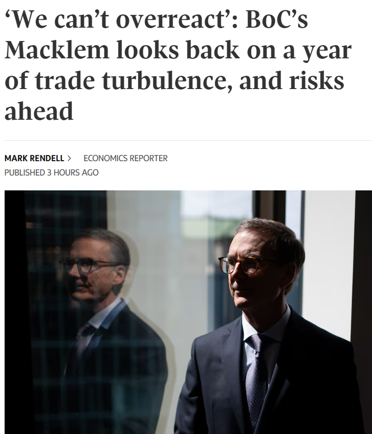 麦克莱姆将加拿大经济整体韧性归因于几个因素,其中最重要的是川普给予符合 USMCA 原产地规则的加墨产品的关税豁免。这让大部分加拿大产品仍可免关税进入美国,使加拿大对美出口的平均有效关税率约为 6%,虽高于去年的几乎零关税,但在美国所有贸易伙伴中仍属最低。