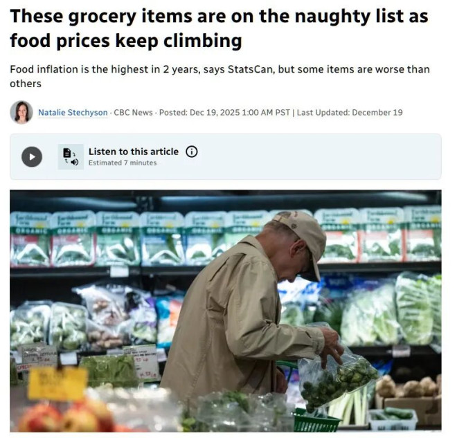加拿大食品价格持续飙涨太离谱 留学生不来了