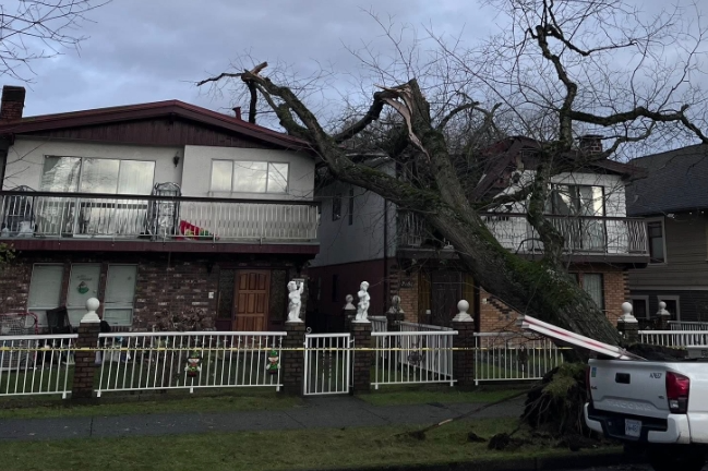 半夜轰然巨响!大树压塌温哥华华裔一家房屋