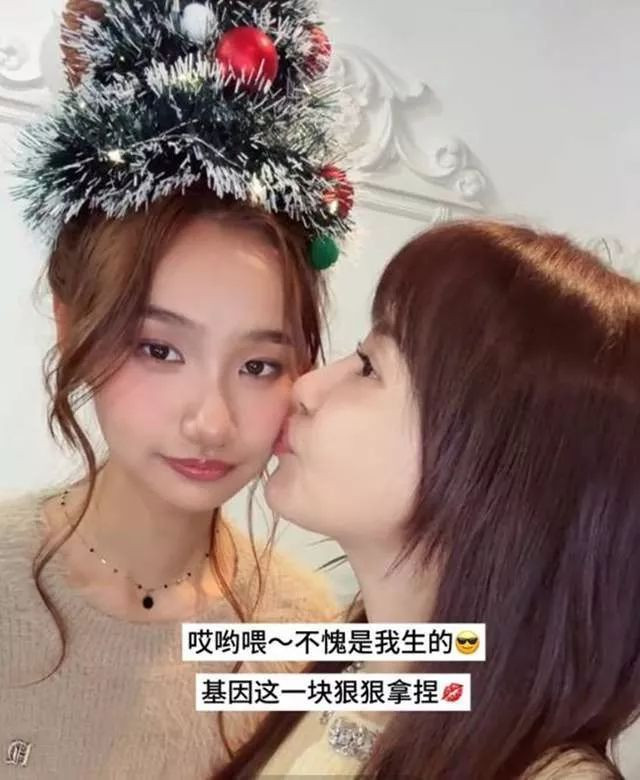 对于自己的圣诞妆容,有有还是很满意的,上一秒还是被迫营业表情高冷的她,脸上瞬时洋溢出灿烂笑容,笑起来的有有更像妈妈了,母女俩简直如复制粘贴一般,真的是一点没浪费妈妈的美貌基因。