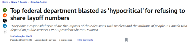 枢密院办公室(Privy Council Office,简称 PCO)至今保持沉默,这也释放出一个信号:随着大多数联邦部门和机构准备在明年 1 月宣布大规模裁员,政府可能并不打算对公众坦诚公布相关信息。