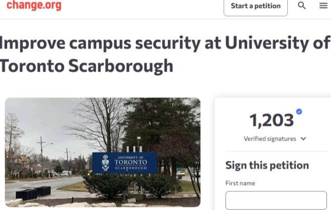 一项呼吁加强校园安保措施的请愿书,截至周一,已获得1200个签名。请愿书写道:“我们敦促多伦多大学士嘉堡校区管理层立即采取行动,加强校园安全。通过增加监控覆盖范围并确保充足的安保力量,我们可以营造一个更加安全的环境。”