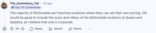 楼主如果能把 Queen & Spadina 那家‘人间炼狱’麦当劳也加进去就更好了,我印象里那家以前是公司直营店。”
