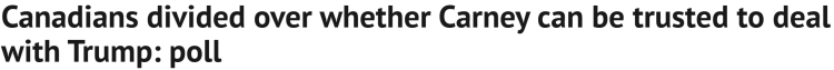 他还指出,加拿大人对卡尼的不信任程度同样令人印象深刻。民调显示,加拿大社会几乎一分为二:41% 的人表示信任卡尼在川普执政下处理加美关系的能力,40% 表示不信任卡尼能在政治和经济决策上抵御川普,另有 19% 尚未表态。