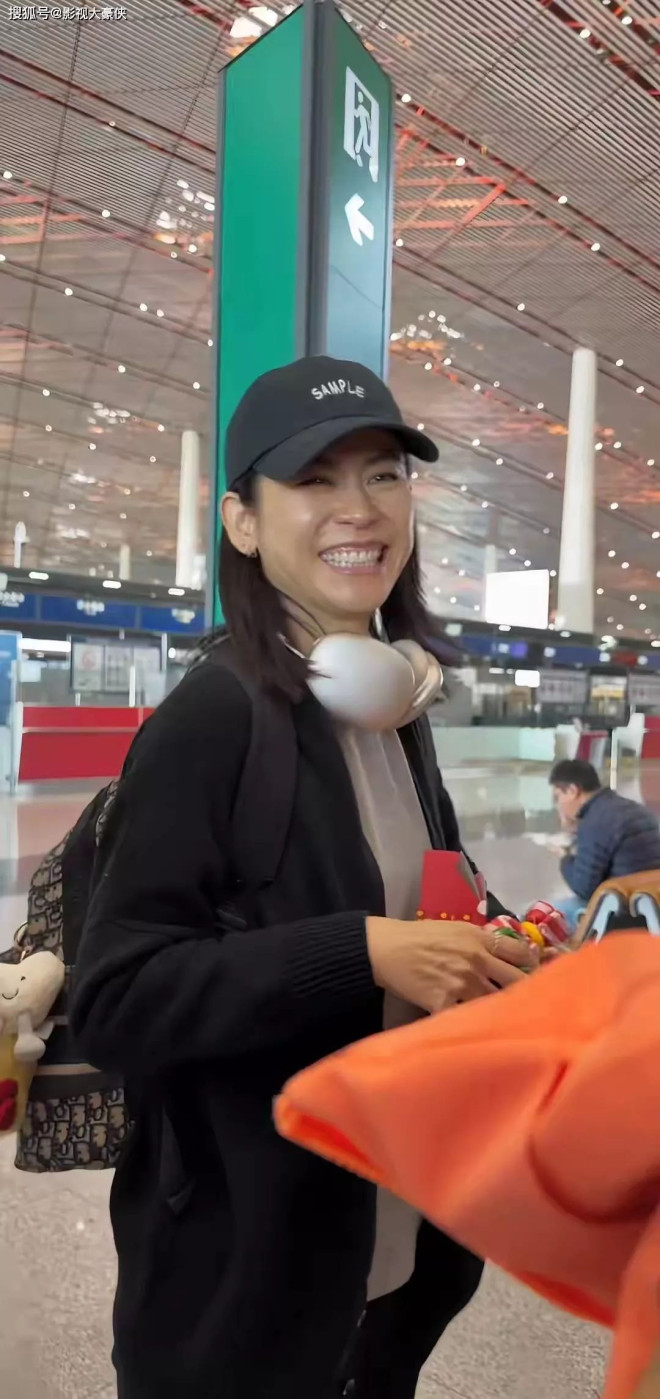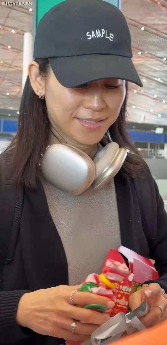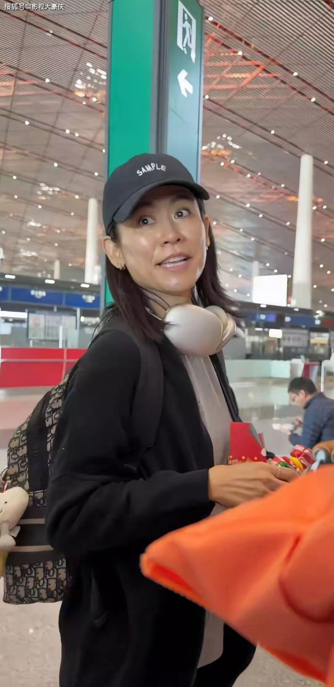 画面中的她纯素颜出镜,无美颜、无滤镜,身着简约黑色针织外套,头戴棒球帽,背着双肩包,步履匆匆,活脱脱一位赶路的普通阿姨模样,全然不见舞台上的光鲜亮丽。