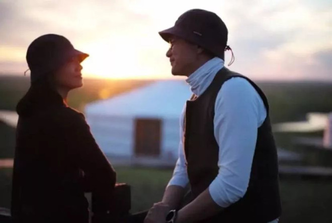 还晒出来自己和老公的素颜照,他们穿着厚厚的羽绒服、戴着帽子、围巾,在大学里拍了合影。