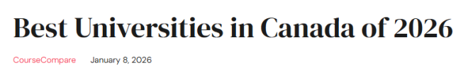 如果你正在寻找适合自己的加拿大大学,教育类平台CourseCompare刚刚发布了2026年加拿大最佳大学排行榜。