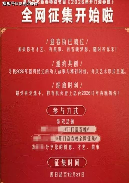 眼瞅着2026年马年春晚临近,筹备组早早把吉祥物“四骏马”给亮了出来,还弄了个“开门迎春晚”的征集活动。