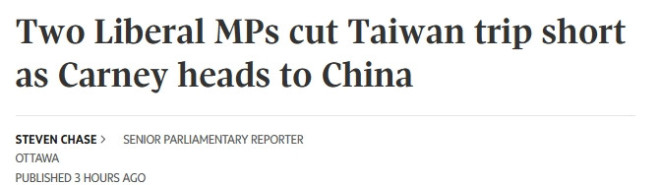 本周,两名加拿大自由党国会议员提前结束了对台湾的访问行程。值得注意的是,这次行程原本在时间上与总理卡尼(Mark Carney) 访问北京、试图修复加中关系的行程重叠。