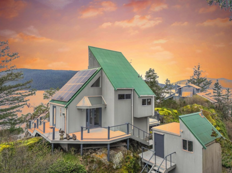 这栋房子位于Mayne Island,靠近悬崖,外观低调。挂牌价$315万,秋季以约$270万成交。