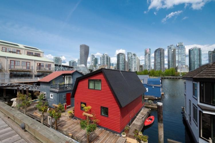Granville Island有一套漂浮住宅挂牌,看起来像小木屋,但是真正建在水面上的房子。