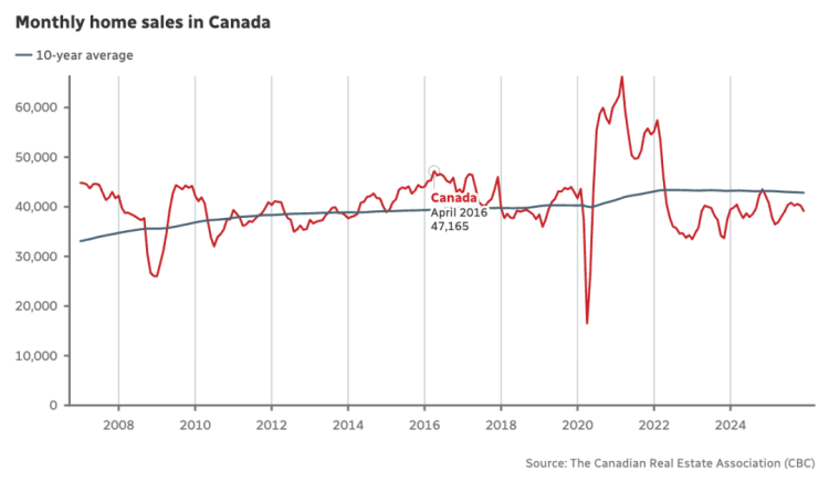 2025 年,一些加拿大市场的买家仍然坚定地持观望态度,他们受到高企的失业率和美国贸易战引发的担忧的吓退。