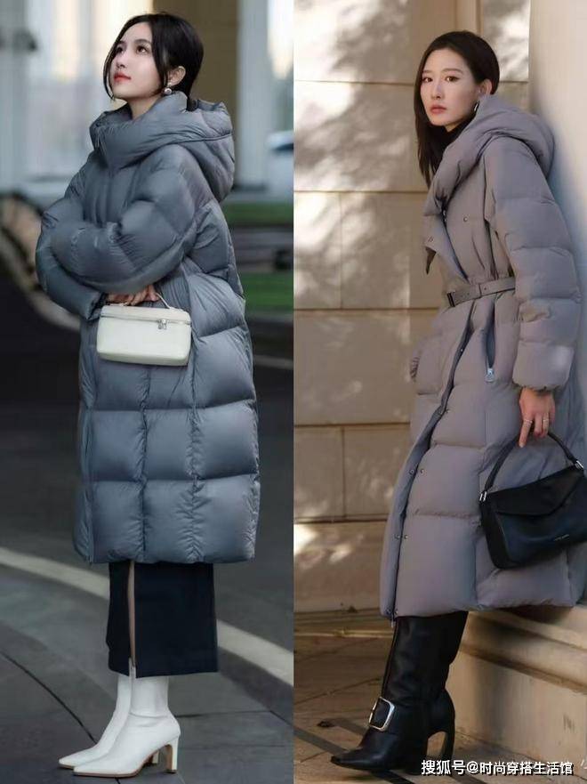 除了毛呢大衣以外,羽绒服也是冬季必备的单品,但是羽绒服的设计大多简单,容易显得单调乏味。通过羽绒服和灰色大衣的巧妙搭配,展现了时尚的极致。而羽绒服的选择也很重要, 要选择薄款的羽绒服,并且强调收缩的设计,修饰身材曲线,避免一般宽松的羽绒服所导致的臃肿感。