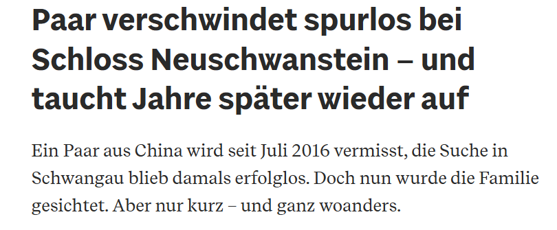 2016年,一对中国夫妇前往欧洲旅游,在参观景点的过程中神秘失踪。这起神秘失踪案曾引发广泛关注,当地警方展开大规模搜查,都未能找到两人的踪迹。不曾想近十年后,事件竟然出现了转机,早已了无踪迹的二人出现在了另一个国家的机场。这种游客在海外失踪的事件在澳洲也发生过,据传,曾经有20多人集体脱团......一对在海外失踪近10年的中国夫妇,近日竟重新出现在另一个国家的机场。2016年7月,一对中国游客夫妇在位于德国西南部菲森附近的著名景点新天鹅堡离奇失踪。据德国媒体报道,37岁的陈思宏与39岁的妻子陈晓霞(均为音译)于7月2日作为旅行团成员前往该城堡参观。两人在游览过程中脱离团队,自行参观城堡,随后却一直未返回旅游大巴,旅行团因此报警。当时,陈思宏穿着凉鞋和牛仔裤,陈晓霞穿着白色毛衣、搭配浅色长裤。从大巴停车地走到新天鹅堡,通常需要沿着山路向上走几百米。但两人下车后却并没有抵达新天鹅堡这个景点参观,没有这两人刷票进入闸机的记录。当天傍晚,这辆旅游大巴在没有这对夫妇乘坐的情况下,驶离了景点。旅游团在未能等到陈氏夫妇的情况下报警求助。接到报警后,当地警方立即出动直升机和潜水员,组织大规模搜寻活动。然而,无论是水中还是山上,都未能发现两人的踪迹,搜寻活动一无所获。之后接受媒体采访的警方表示:“我们已经停止了搜寻。”潜水员撤离了,配备热成像摄像头的直升机机组撤走了,高山行动组的警员也已离开。当地警方又依靠两张黑白照片在整个申根区范围内搜寻这对夫妻,依然是毫无收获。陈氏夫妇到底是发生了意外,还是遭遇了犯罪行为,亦或是自行脱团离开,这在当时都成了难以回答的问题。据最新报道,这对失踪多年的夫妇在荷兰一机场接受例行检查时被识破身份,由于二人是失踪人员,很快就引起了警方的关注。夫妻两的旅游签早已过期,非法滞留在申根区多年,此次现身机场,很可能是想要离开。但其具体去向、这些年又是如何生活的,荷兰方面并未透露。夫妇二人再次现身,似乎在某种程度上坐实了当年两人是自行选择离开的。类似游客在海外脱团的事件,在澳洲也发生过,据传曾有20多名游客集体脱团,只剩下导游一人...... 前段时间,有人在中文社交媒体上曝光称,有两个游客脱团逃跑,滞留在澳洲。对此帖主表示,旅行社真是倒霉!两个客人赚不了多少钱,还要被罚款!像这种旅游团,通常需要参加的人交付一大笔钱作为押金,有网友质疑:但对某些铁了心就是想非法移民的人来说,这些钱可能也只是他们计划内的“开销”。