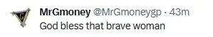 “上帝保佑这位勇敢的女士。”